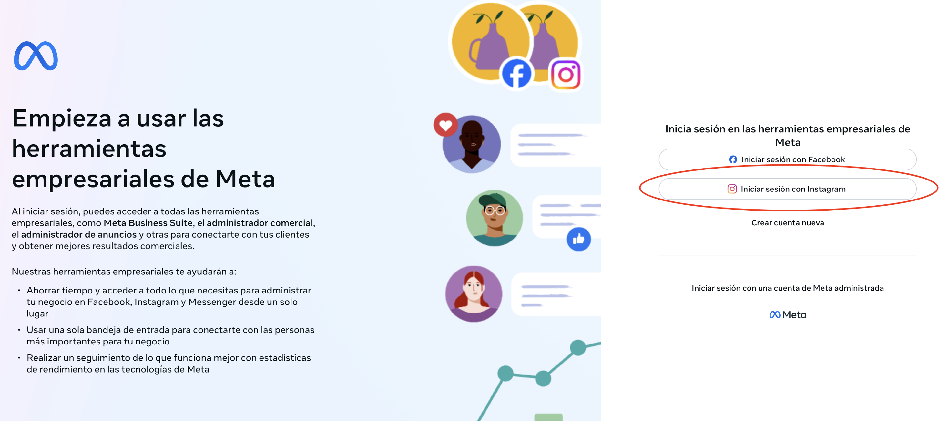 Una vez dentro van a iniciar sesion con el Instagram del negocio.